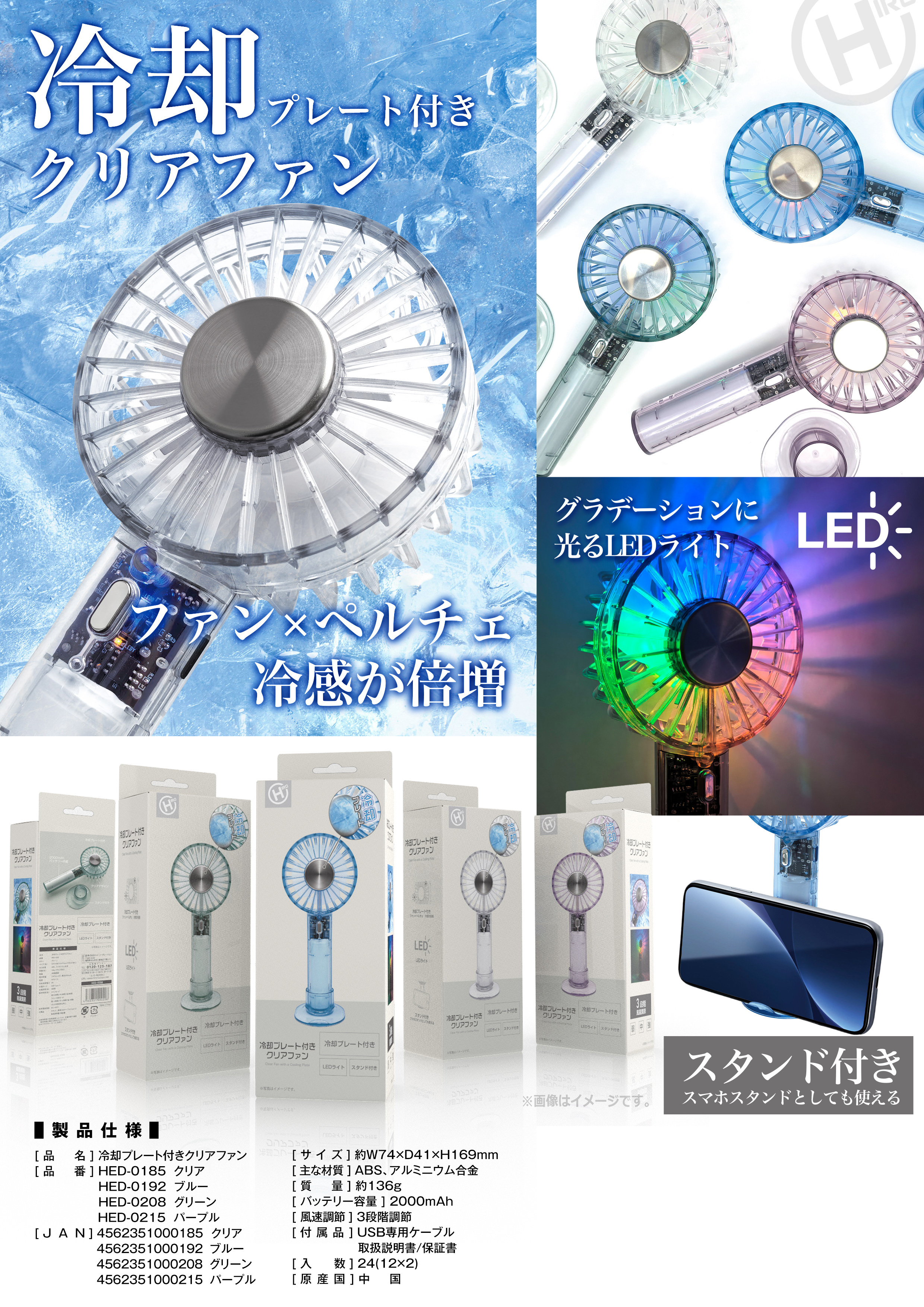 冷却プレート付きハンディファン HED-0185/HED-0192/HED-0208/HED-0215