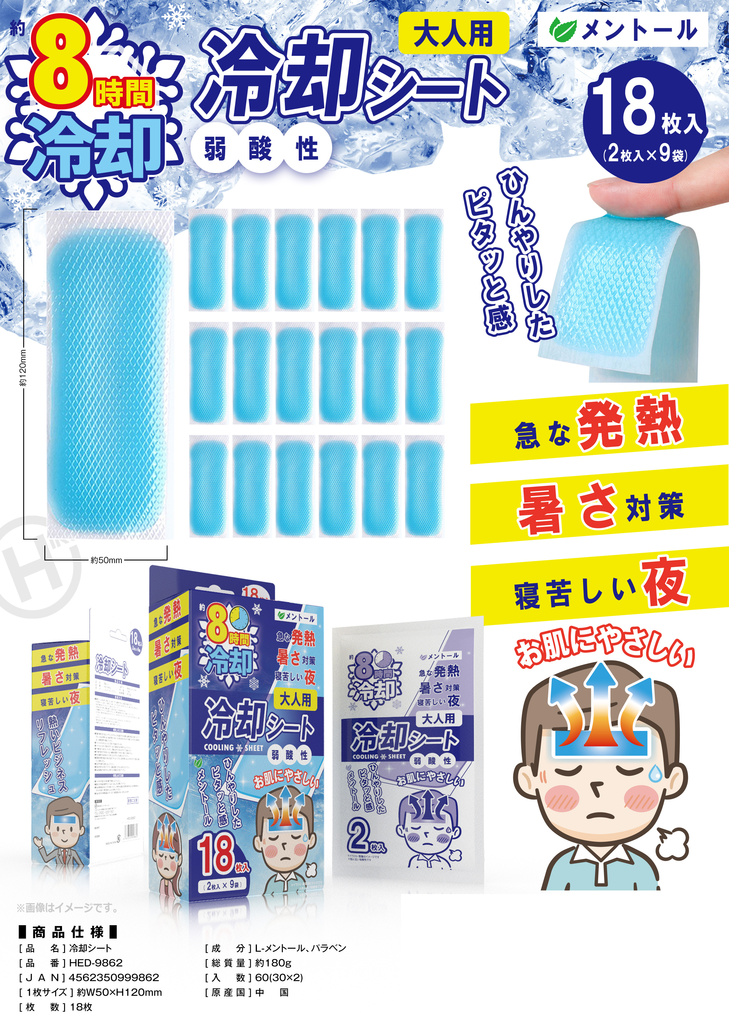 ひんやりピタッと爽快冷却シート18枚入り HED-9862