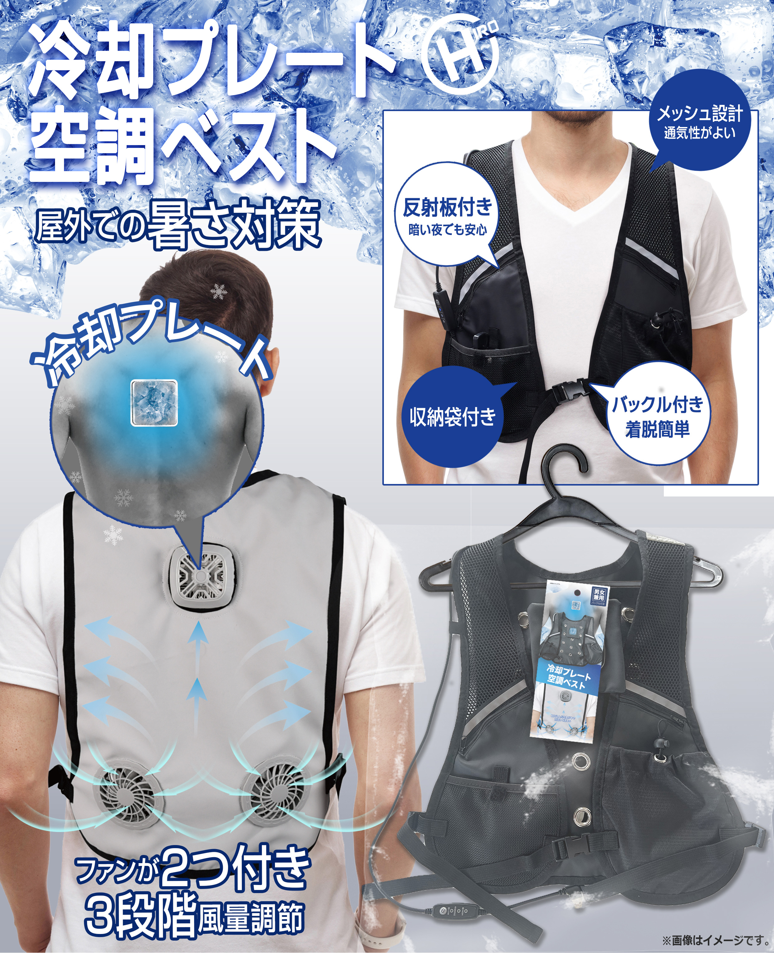 こちらの商品は、冷却プレートとファンで暑さ対策する空調ベストです。